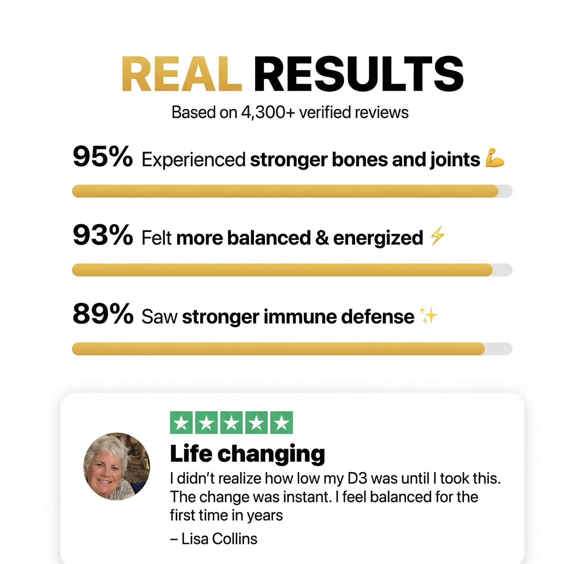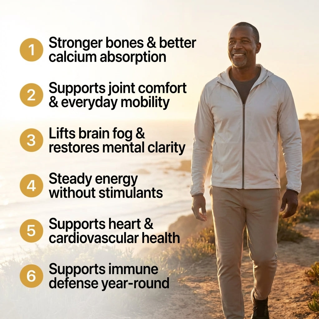 With 62% of Americans deficient in Vitamin D, this formula was designed to make sure you actually get the benefits — stronger bones, healthier heart, reduced inflammation, and balanced mood.